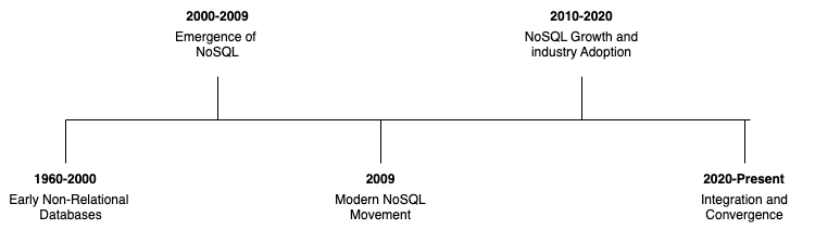 The history of NoSQL is tied to the evolving needs of data storage and processing, particularly with the rise of the internet and large-scale web applications. NoSQL first emerged in the early 2000s, driven by the evolving needs of Web 2.0 applications.
