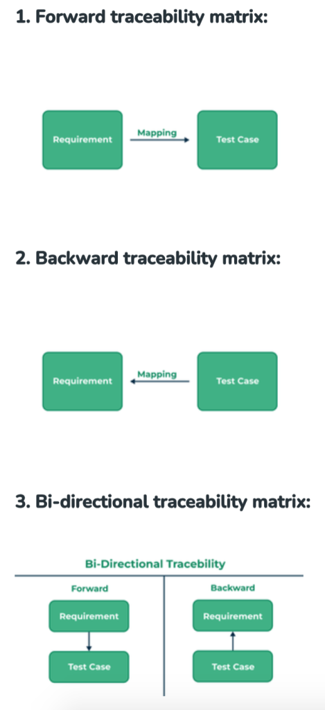 - RTM provides a bidirectional link between requirements and test cases, allowing teams to trace backward (test case to requirement) or forward (requirement to test case).
